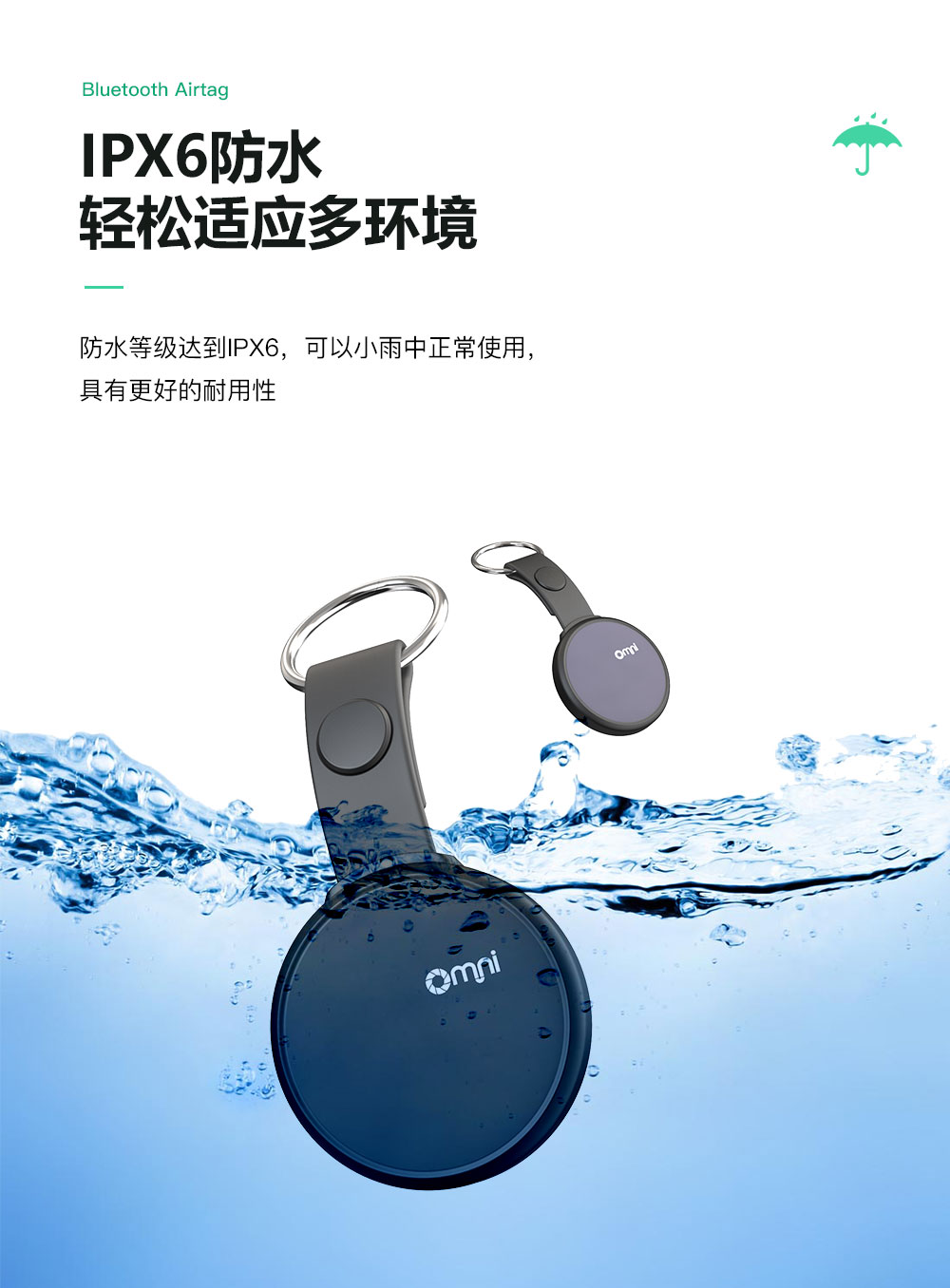 防水功能:歐米藍(lán)牙物品定位器防水等級(jí)達(dá)到IPX6防水,可以小雨中正常使用,具有更好的耐用性。
